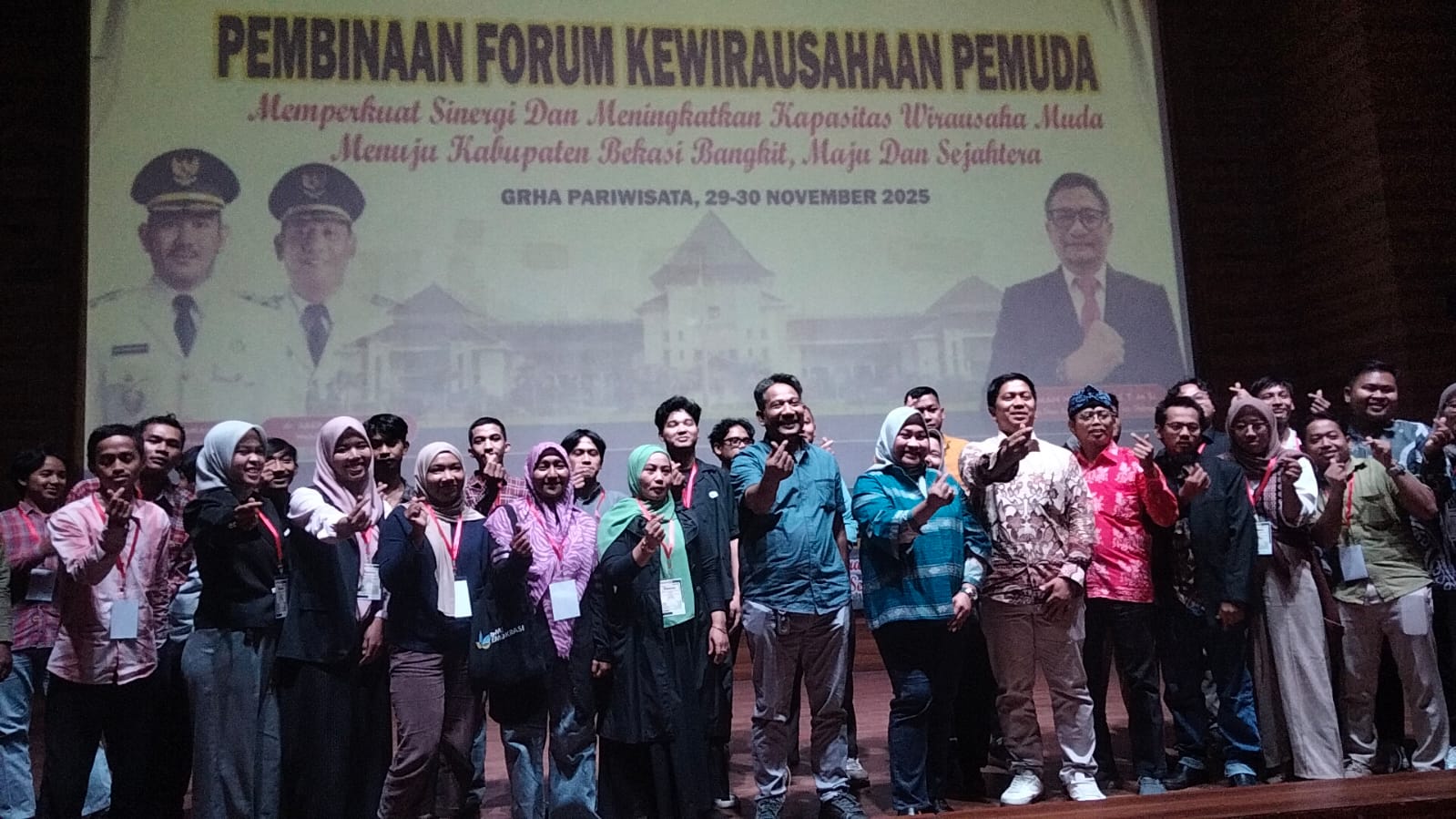 Forum Kewirausahaan Pemuda (FKP) Kabupaten Bekasi berkolaborasi bersama Dinas Kebudayaan, Pemuda dan Olahraga (Disbudpora) Kabupaten Bekasi menggelar kegiatan Pembinaan Kewirausahaan Pemuda 2025 yang berlangsung pada 29–30 November 2025 di Gedung Graha Pariwisata Kabupaten Bekasi, Jawa Barat. (pede)