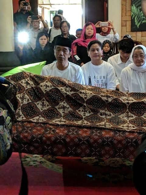 Jokowi dan Isteri di depan Jenazah Ibunda