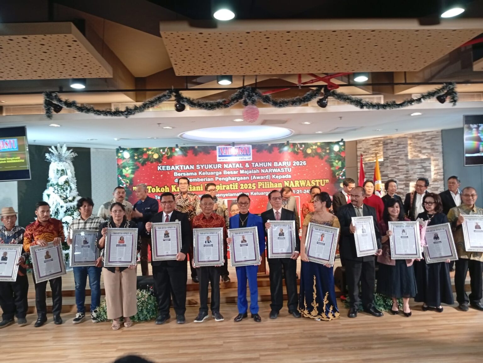 Bagi NARWASTU, mereka adalah sosok berpengaruh yang mampu menjadi teladan di tengah masyarakat. “Kami menampilkan figur-figur ini karena aktivitas mereka menginspirasi. Menginspirasi artinya mampu menjadi teladan, memiliki gagasan inovatif, mencerahkan, bahkan kerap menjadi perbincangan publik,” ujar Pemimpin Umum/Pemimpin Redaksi Majalah NARWASTU, Jonro I. Munthe, S.Sos, kepada pers di Jakarta, usai memberikan anugerah kepada 21 tokoh Kristiani Inspiratif usai perayaan Natal & Doa Bersama awal tahun 2026 di salah satu gereja di bilangan Jakarta Selatan pada Jum’at (16/1/2026) sore.