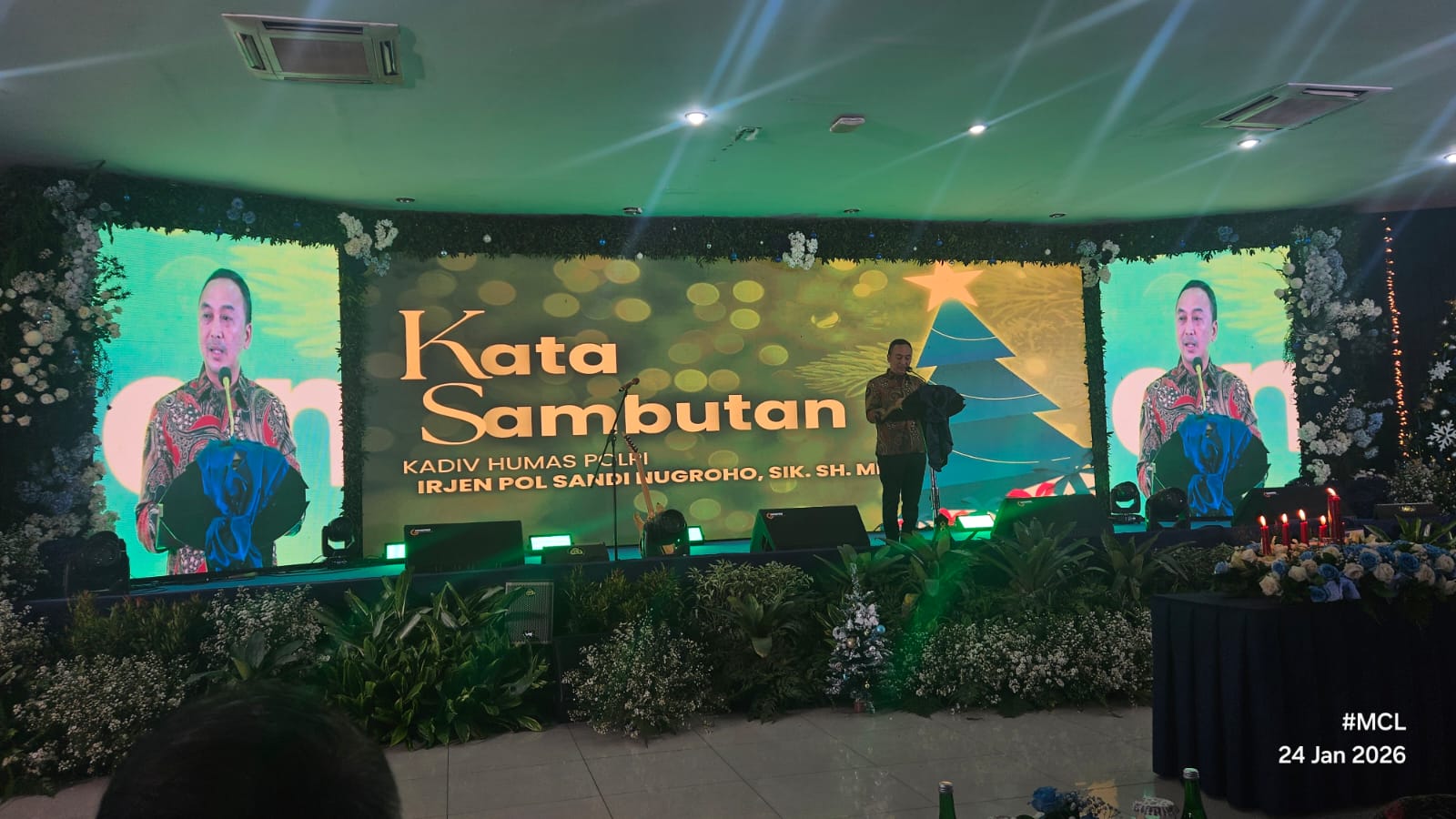 Pengkhotbah dalam ibadah tersebut, Irjen Pol Daniel Tahi Monang Silitonga, menjelaskan bahwa tema yang diambil dari Kitab Matius 1:21–24 itu menegaskan makna Natal sebagai peristiwa keselamatan, bukan sekadar perayaan seremonial. Subtema yang diangkat yakni Natal Membawa Berita Sukacita dan Keselamatan bagi Manusia.