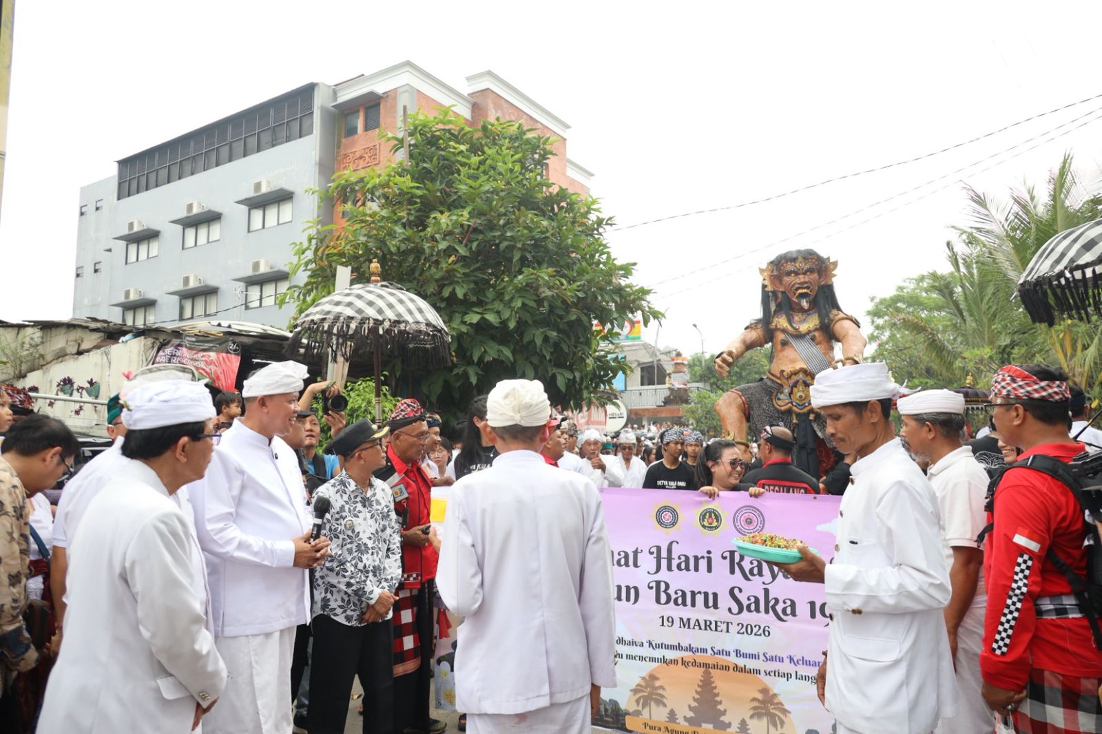 Wali Kota Bekasi, Tri Adhianto, hadir langsung dan membuka pawai tersebut. Ia menyaksikan antusiasme umat Hindu yang turut melibatkan masyarakat sekitar dalam perayaan penuh makna ini.