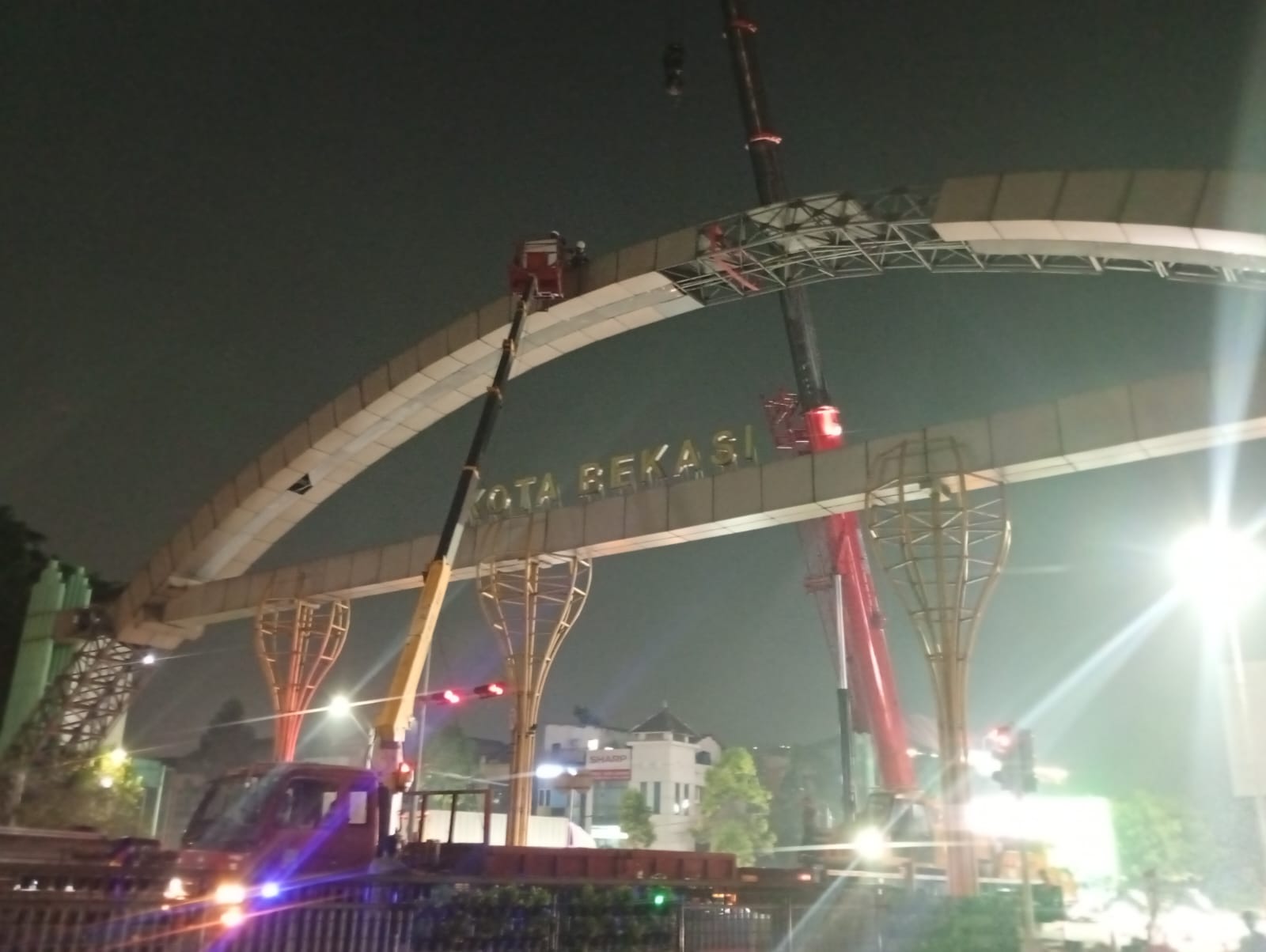BEKASIPEDIA.com | KOTA BEKASI – Gapura yang menjadi salah satu landmark Kota Bekasi di Jalan Joyo Martono, Bekasi Timur, Kota Bekasi, Jawa Barat, mulai dibongkar sebagai bagian dari penyesuaian trase pembangunan Jalan Tol Becakayu.