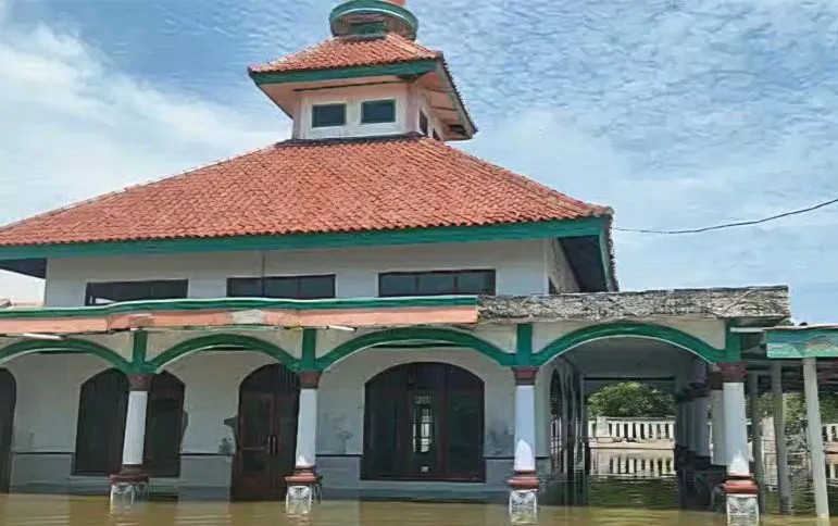 Masjid Jamie Nurul Falah di Desa Pantai Bahagia, Kecamatan Muaragembong, Kabupaten Bekasi masih terendam banjir rob akibat pasang air laut. (ist/ant)