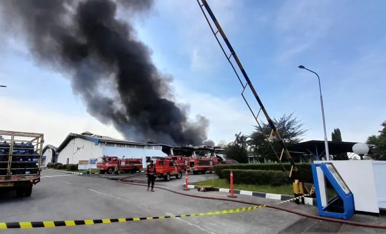 Petugas Damkar Bekasi Berjibaku 12 Jam Padamkan Kebakaran Gudang Tekstil di Jababeka