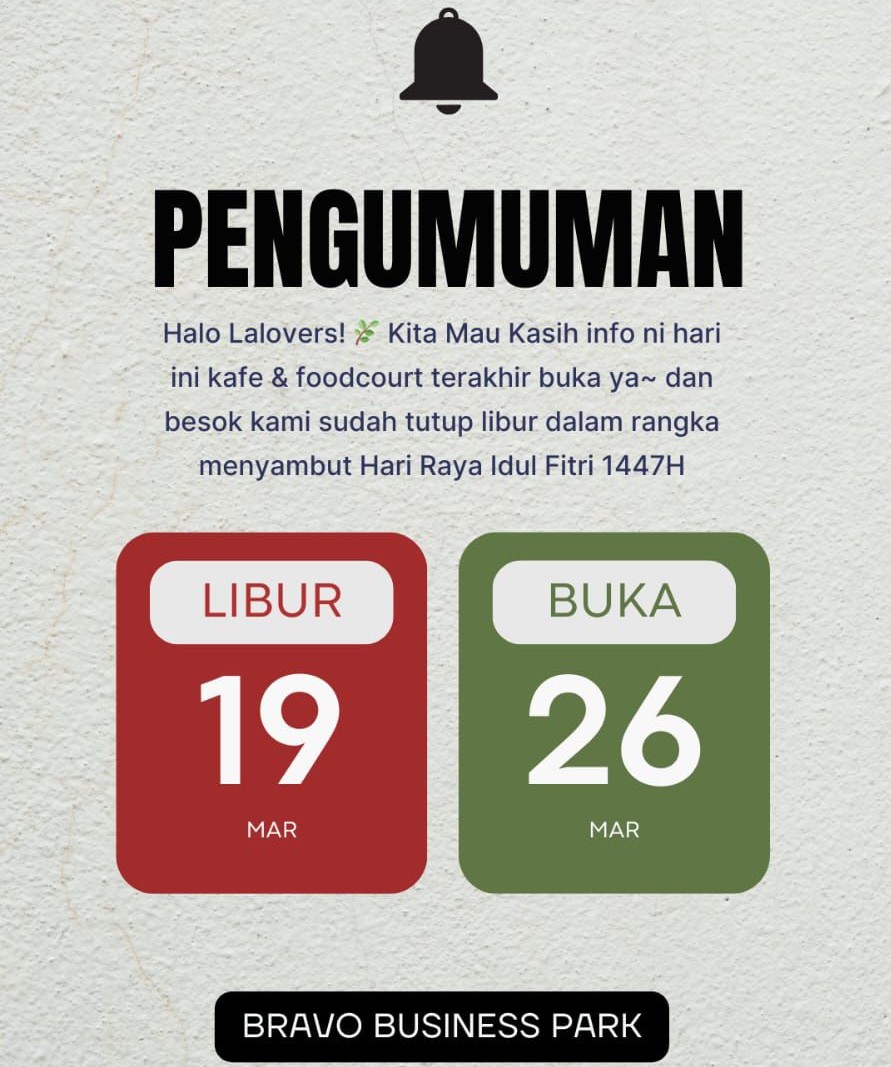 BEKASIPEDIA.com | KOTA BEKASI – Suasana kuliner di kawasan Rawalumbu, Kota Bekasi, untuk sementara akan sedikit berbeda dalam beberapa hari ke depan. GENDHING DJAWI Resto, Cafe & Foodcourt resmi menutup operasional sementara dalam rangka libur mudik Lebaran.