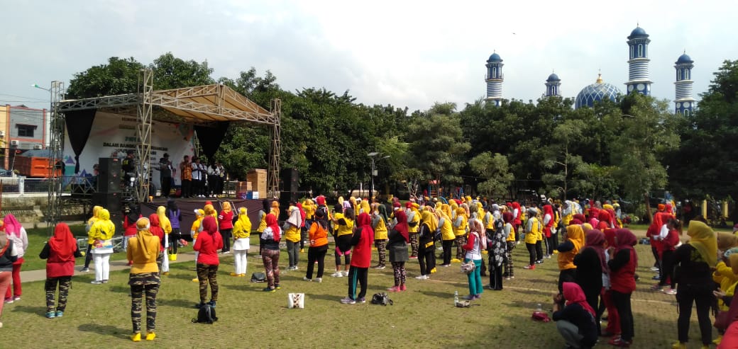 Sambut HUT Kota Bekasi ke-23, Kecamatan Bantar Gebang Gelar Senam Massal dan Fun Game