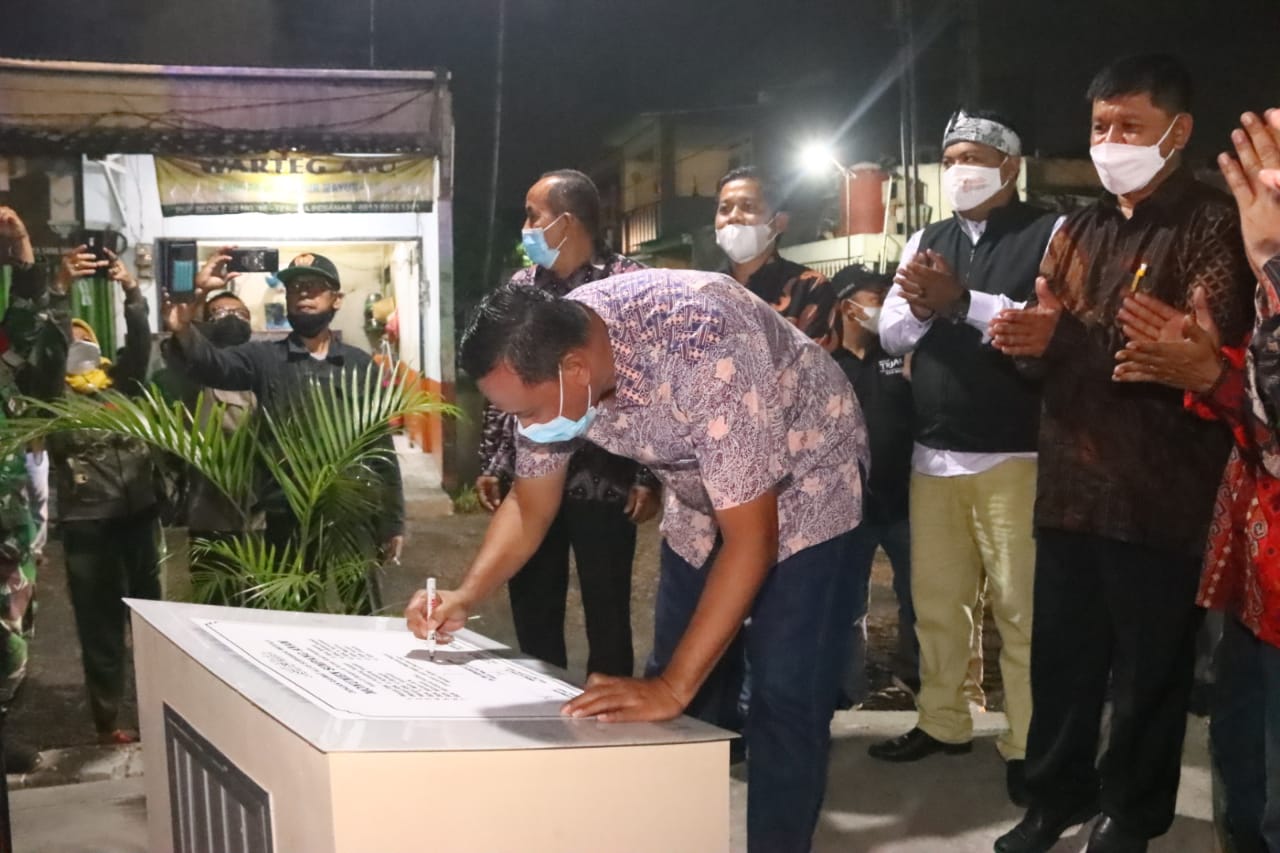 BEKASI UTARA, BEKASIPEDIA.com – Wakil Wali Kota Bekasi Tri Adhianto meresmikan Tugu Simpang Anam yang berlokasi di persimpangan RW 11 Kelurahan Kaliabang Tengah, Kecamatan Bekasi Utara, Sabtu (23/10/2021).