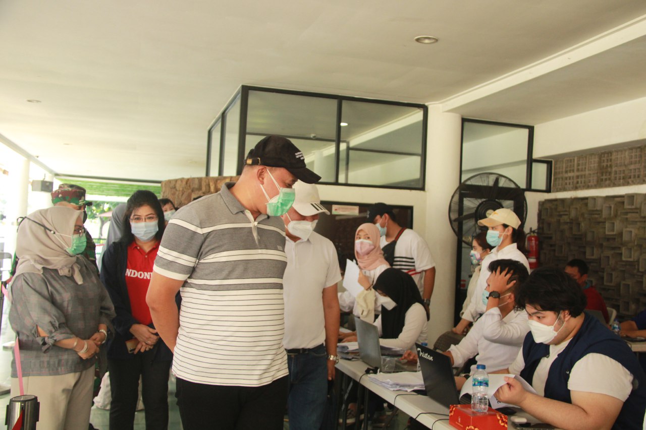 PONDOK MELATI, BEKASIPEDIA.com – Wakil Wali Kota Bekasi Dr. Tri Adhianto didampingi istri, Wiwiek Hargono tinjau pelaksanaan vaksinasi yang diadakan oleh Kesdam Jaya di lokasi Perum Green Park Jatimelati Kecamatan Pondok Melati, Rabu (11/8/2021).