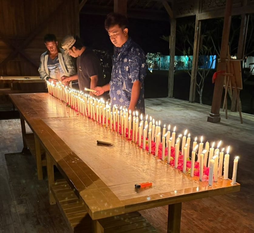 Migi dan suami sengaja memilih lilin karena punya banyak simbol seperti kedamaian, keikhlasan, cahaya, harapan, kehidupan, dan lainnya. “Simbol ini memotivasi saudara-saudara kita yang tengah tertimpa musibah agar senantiasa ikhlas, punya harapan ke depan, dan sebagainya,” papar Migi didampingi Andrew James yang merupakan arsitek asal Australia ini.