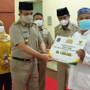 JAKARTAPEDIA.id – Wali Kota Jakarta Timur, Muhammad Anwar, Selasa (12/4/2022), secara simbolis menyerahkan bantuan sosial dari Baznas Bazis kepada 4.500 marbot musala